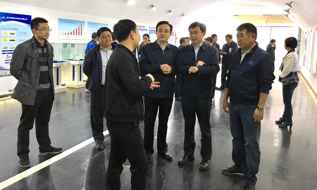 11月2日,安徽省住建廳廳長(cháng)張天培率省工作組一行來(lái)到博藍特集團旗下的黃山博藍特半導體科技有限公司開(kāi)展掛牌重點(diǎn)企業(yè)、推進(jìn)“四送一服”雙千工程政策落實(shí)督查調研。黃山市委常委、常務(wù)副市長(cháng)劉孝華,屯溪區區長(cháng)江善良一同參加調研,博藍特集團副董事長(cháng)劉忠堯陪同調研。