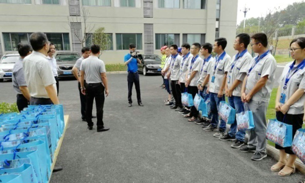江書(shū)記親手為黃山工廠(chǎng)基層員工遞上各種防暑降溫物品,還叮囑企業(yè)員工要注意合理安排作息時(shí)間,做好防暑降溫,加強勞動(dòng)保護。